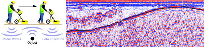 Il Georadar o Ground Probing Radar (GPR) è una tecnica non distruttiva basata sull’immissione di impulsi di onde elettromagnetiche ad alta frequenza (da 10 MHz a qualche GHz) nel sottosuolo e sulla ricezione degli echi radar riflessi da eventuali superfici di discontinuità.